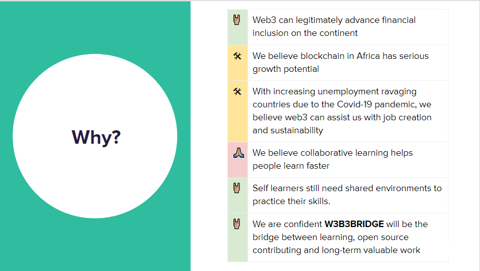 As web3 keeps growing and the demand for awareness increases, we believe that the drive for awareness and adoption in Africa will happen when we have many blockchain solutions domesticated and very relatable to the African experience and building quality African developers to oversee and bring these solutions to reality is a good start in achieving this goal.