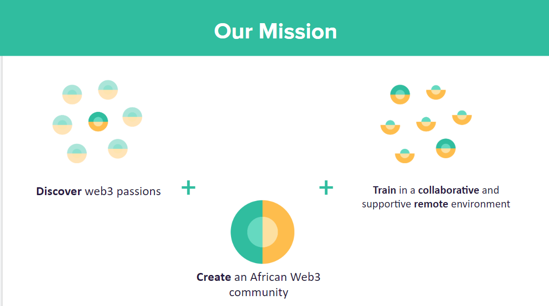 Our mission is to identify web3 passions, train them in a collaborative and supportive remote environment and create an African web3 community.